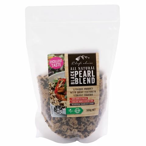 Chef’s Choice All Natural Aztec Black Pearl Blend has a striking presentation with the combination of long grain brown rice, black barley and red quinoa. It is a wholegrain product that complements dishes from lighter entrees to main meals.
