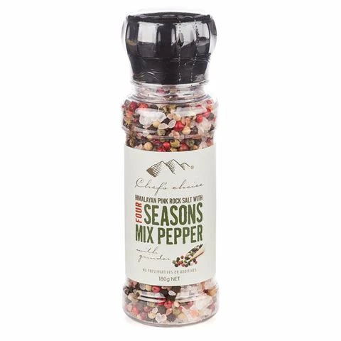 Himalayan Pink Rock Salt with Four Seasons Pepper features: