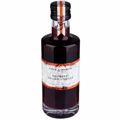 When you want to make a sensational sauce or dressing, you should try Cole & Mason’s Raspberry Balsamic Vinegar, sourced from Germany. White wine vinegar is infused with pure, natural raspberry juice to make this special vinegar, with 5.3% acidity. The bright, lively taste works well with sweet or savoury dishes..