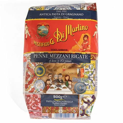 Enjoy a fashionable taste of the Italian region of Campania with Dolce & Gabbana’s Limited Edition Penne Rigate with Pasta Di Martino. The rich pasta is true to high standards of Pasta Di Martino, who have been in business since 1912 but the witty packaging is designed by the Italian fashion house. You’ll dine in style. Â