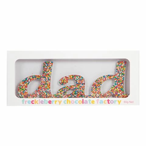 Treat dad to something sweet with this freckle ‘Dad’ chocolate. The finest Belgian milk chocolate covered in rainbow sprinkles, making for the perfect Father’s Day or birthday gift, or just to say I love you.