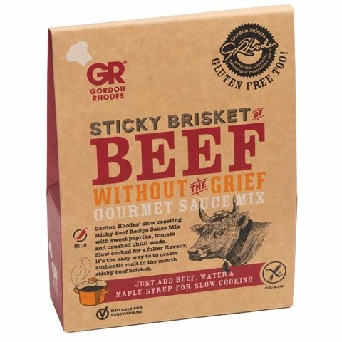 Gordon Rhodes’ slow roasting spicy beef brisket with sweet paprika, tomato and crushed chilli seeds. Slow cooked for a fuller flavour, it’s the easy way to create authentic melt in the mouth sticky beef brisket.