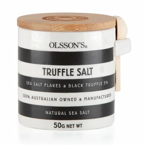 - Ingredients include Olsson’s sea salt flakes, and 5% Australian grown perigord (tuber melanosporum) truffle