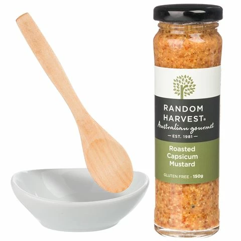 The Bowl & Bag Collection allows you to discover a vast array of condiments and spreads, including the Roasted Capsicum Mustard. This condiment set comes complete with a mini ceramic serving bowl, as well as a wooden spoon for scooping and spreading. Whether you’re using them as bonbonniere, or gifting it to your kris kringle, you can’t go past the Bowl & Bag Collection.
