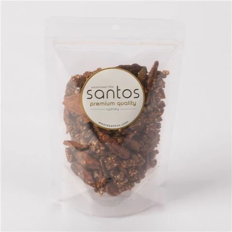 Santos Premium Quality Cacao Orange, Maple Pecan & Organic Fig Clusters are a rich and sweet taste sensation that will make your gatherings pop with their delectable combination of cacao orange, maple pecan and organic fig.