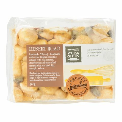 Belgian chocolate and blended with real caramel, along with strawberries and pink salt macadamias, you’ll find itl in a block large enough for everyone to
